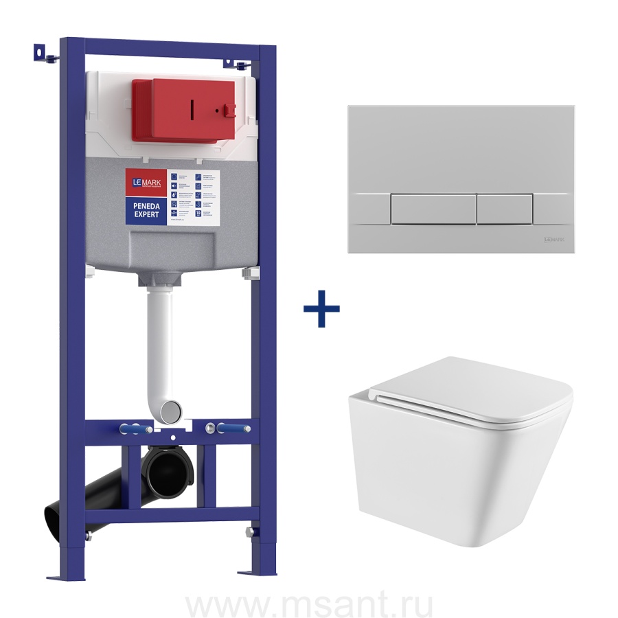 Комплект 3в1: 100123425 Инсталляция Lemark PENEDA EXPERT для унитазов с кнопкой смыва BIT хром матовый + унитаз подвесной безободковый FLOREX Торнадо белый глянец