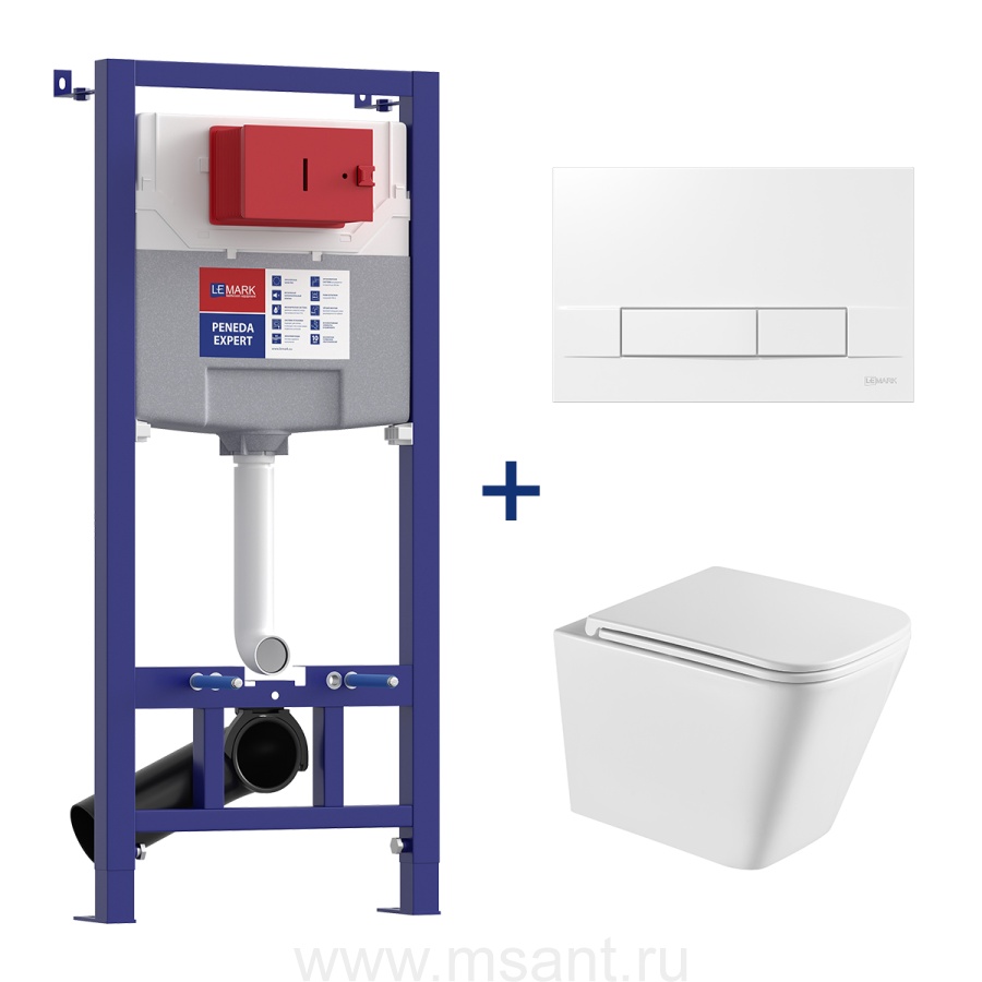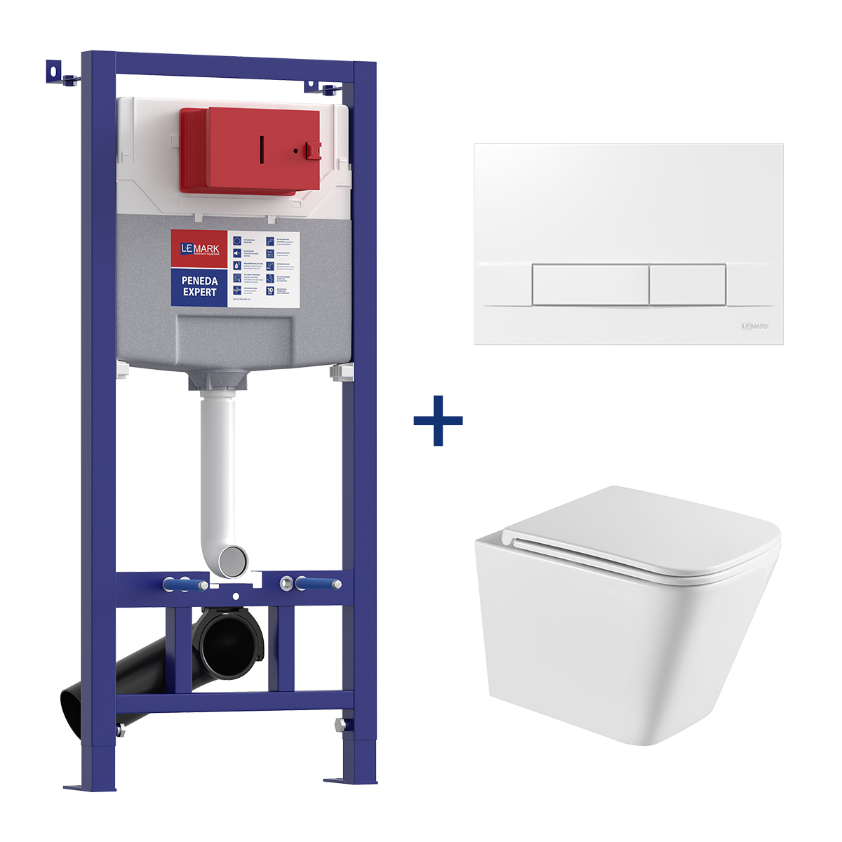 Комплект 3в1: 100124422 Инсталляция Lemark PENEDA EXPERT для унитазов с кнопкой смыва BIT белый глянец + унитаз подвесной безободковый FLOREX Торнадо белый глянец