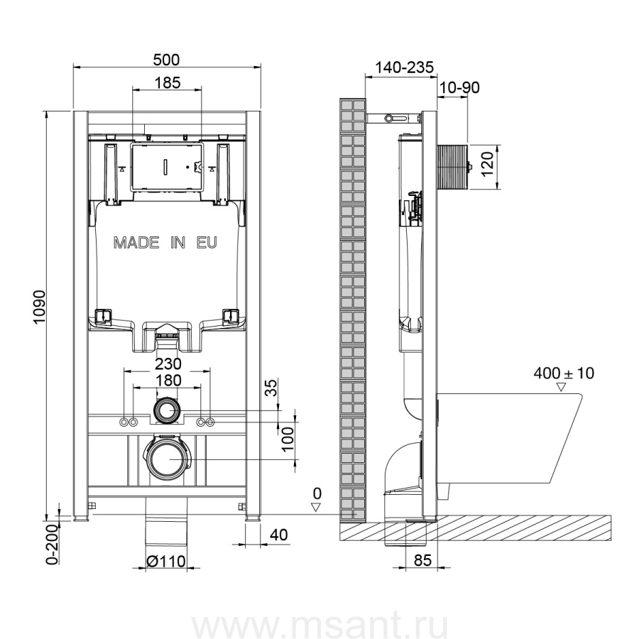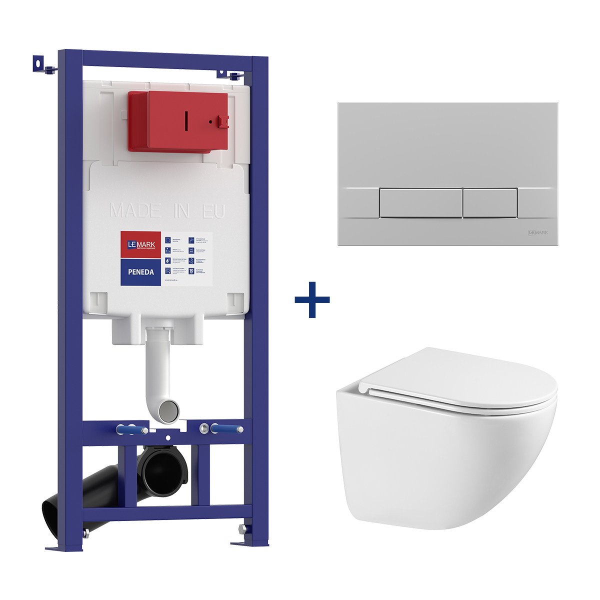 Комплект 3в1: Инсталляция Lemark PENEDA для унитазов с кнопкой смыва BIT хром матовый + унитаз подвесной безободковый GLAZER Торнадо белый глянец