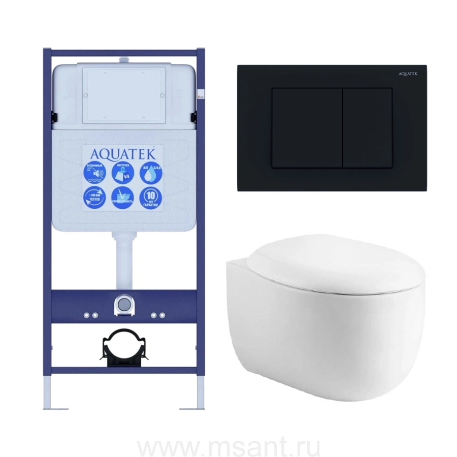 Set-3 AQUATEK АЛЬТАИР (рама AQUATEK Standard INS-0000012 с звукоиз.прокладкой+крепеж KKI-0000002+кнопкаKDI-0000012+унитаз АЛЬТАИР AQ1980-00 с сиденьем мткролифт