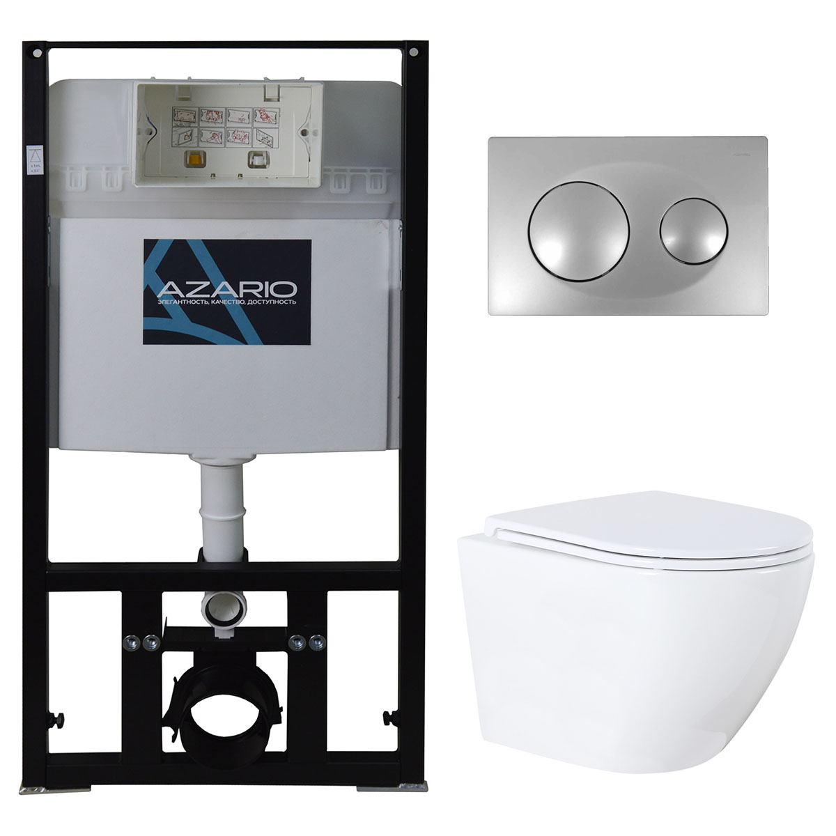 Сет AZARIO инсталляция с панелью смыва + унитаз Grado N с сидением микролифт+ клавиша 0011, хром глянцевый