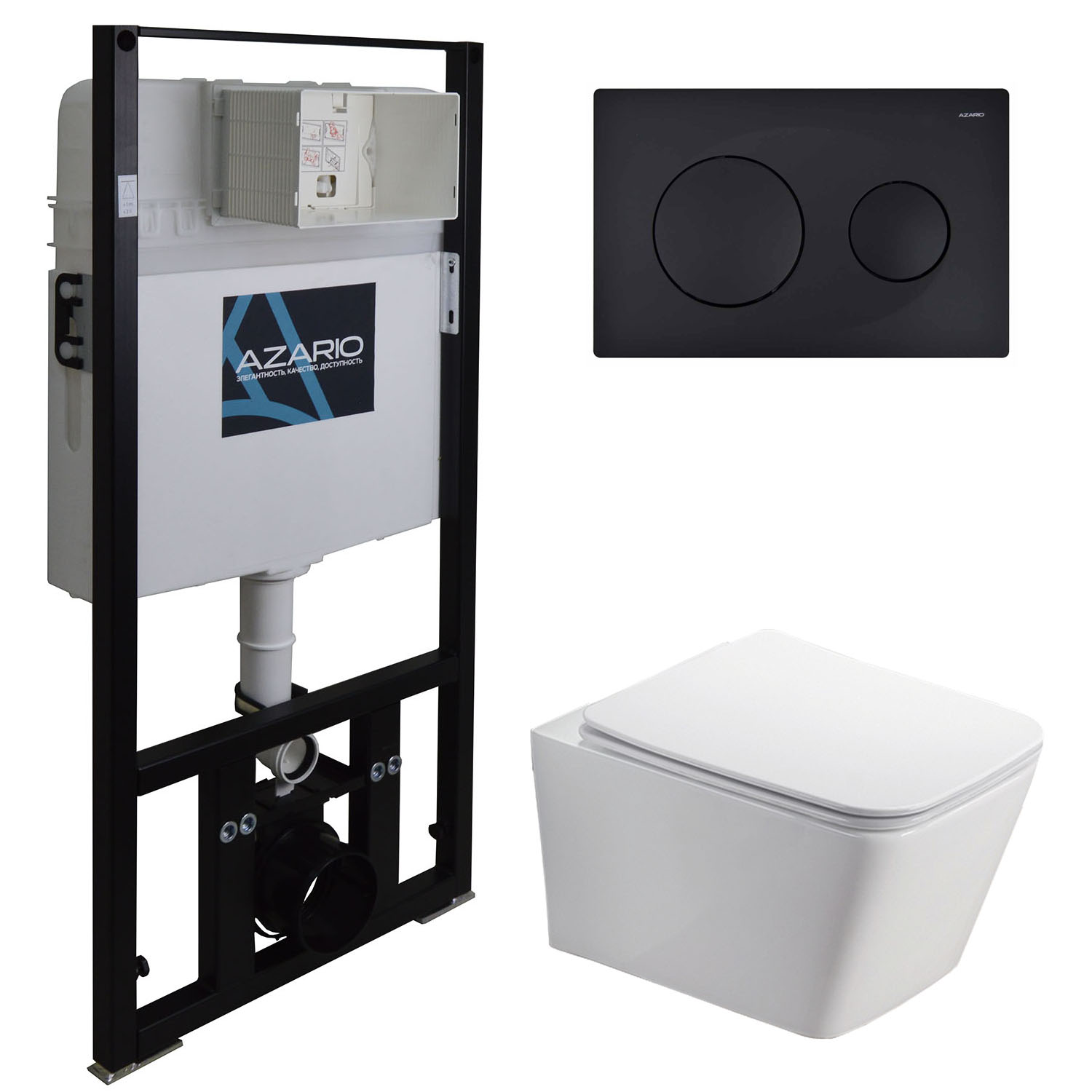 Сет AZARIO инсталляция + унитаз Nova с быстросъемным сиденьем микролифт+чёрная клавиша смыва