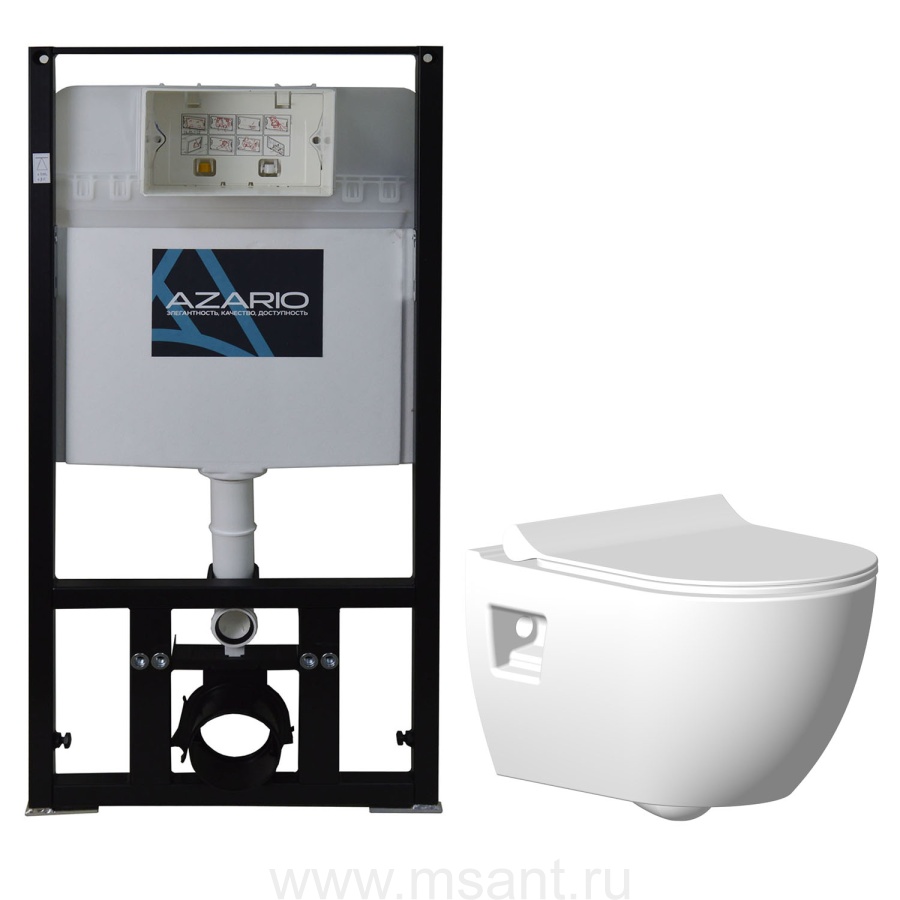 Сет AZARIO инсталяция + унитаз Creo Ceramique Ocean plus подвесной безободковый с тонким сиденьем микролифт