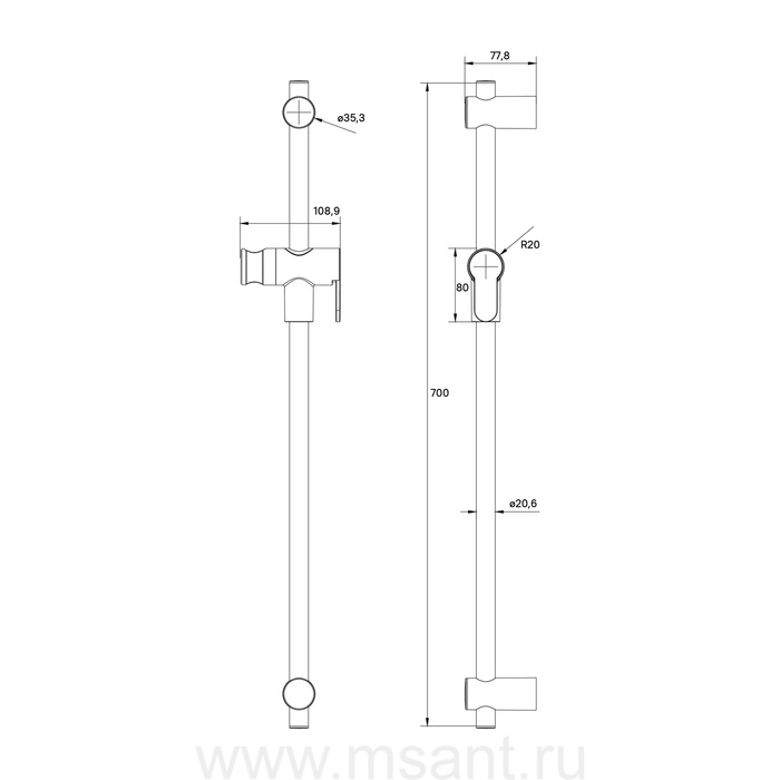 Стойка для душа, графитовая, Ray, IDDIS, RAY70G0i17