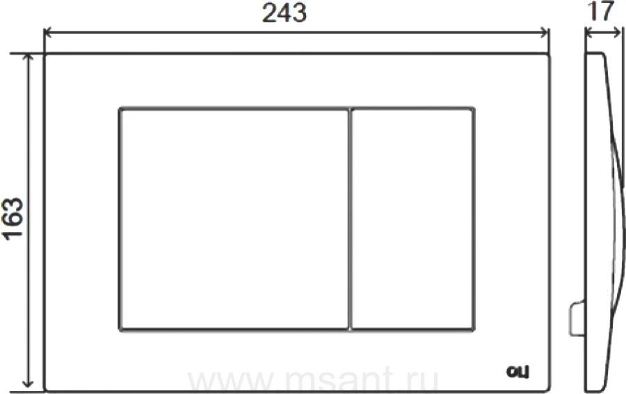 Кнопка смыва OLI Metal dual 656004 хром глянцевый, антивандальная