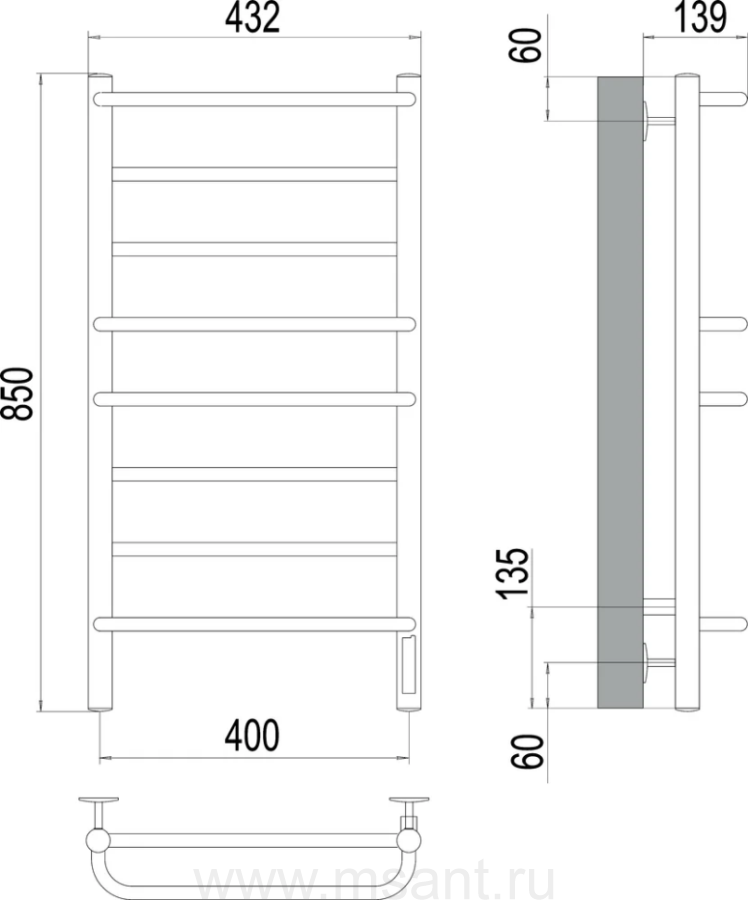 Полотенцесушитель электрический Terminus Евромикс П8 400x850