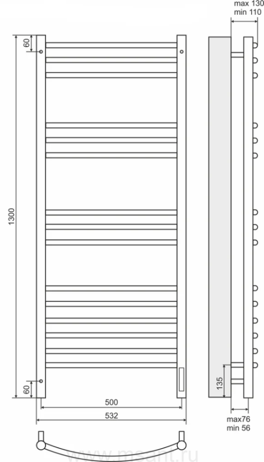 Полотенцесушитель электрический Terminus Классик П15 50x130
