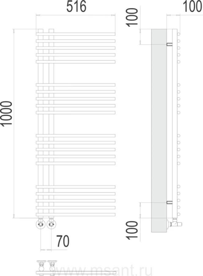 Полотенцесушитель водяной Terminus Астра П20 70х1000