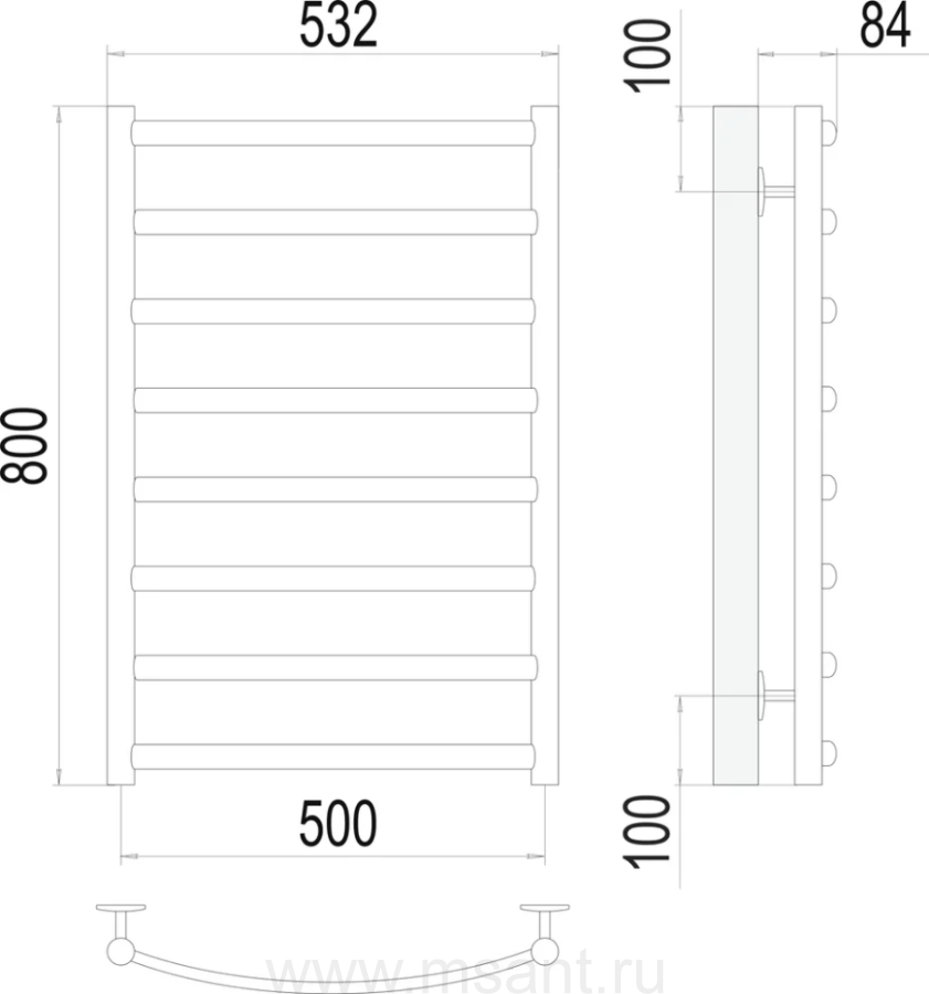 Полотенцесушитель водяной Terminus Атланта+ П8 500x800