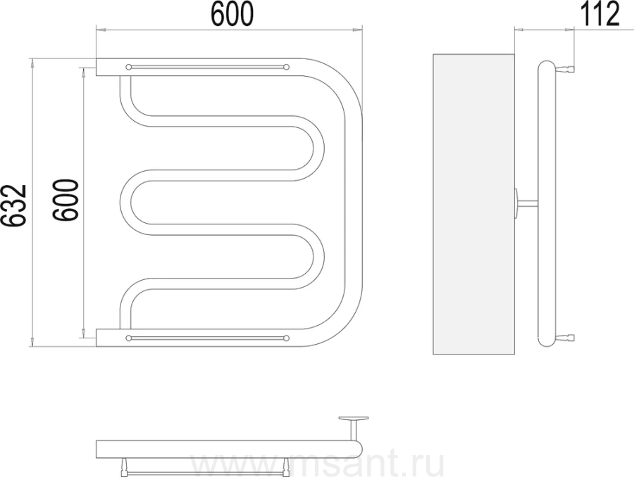 Полотенцесушитель водяной Terminus Фокстрот БШ 600x600