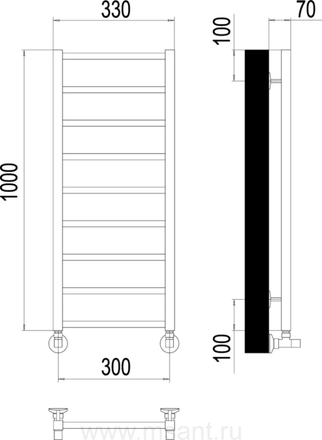 Полотенцесушитель водяной Terminus Контур П9 300*1000