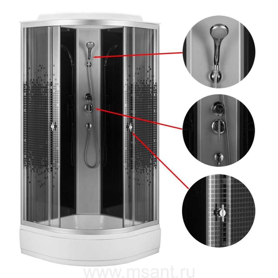 Душевая кабина Loranto 800x800x2150 поддон 25 см, 4 мм прозрачное стекло с рисунком "мозайка" (CS-800-25ТМ/М)