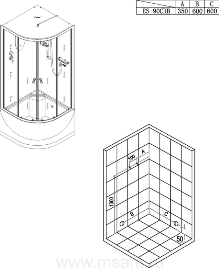 Душевая кабина Esbano Elegancia ESG-90CRB 90х90х210 см