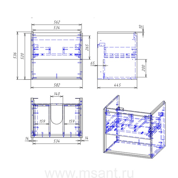 Тумба под раковину подвесная Cersanit LOUNA 60 для COMO 60 белый