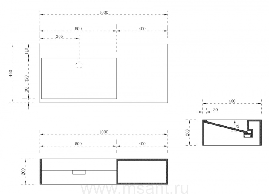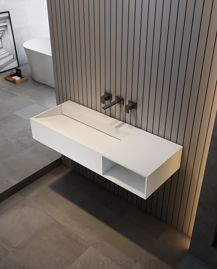 Тумба с раковиной ABBER Stein AS2640-1.0 R подвесная, белая матовая