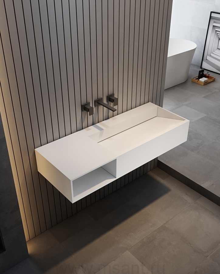 Тумба с раковиной ABBER Stein AS2640-1.2 L подвесная, белая матовая