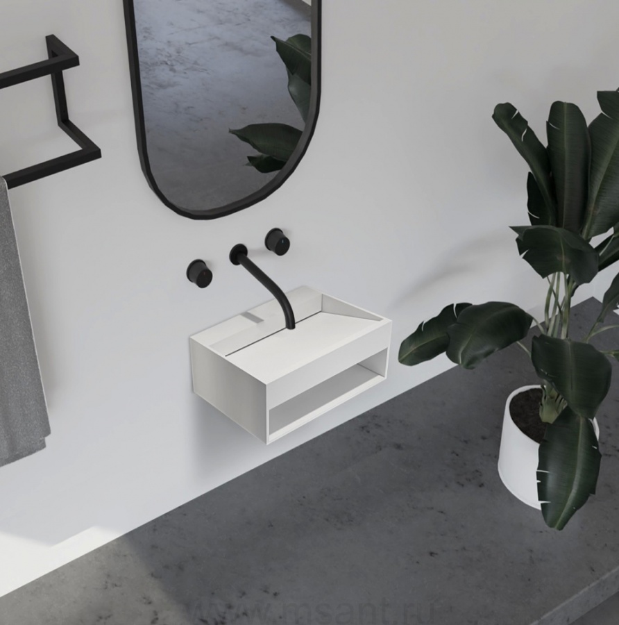 Тумба с раковиной ABBER Stein AS2645-0.6 подвесная, белая матовая