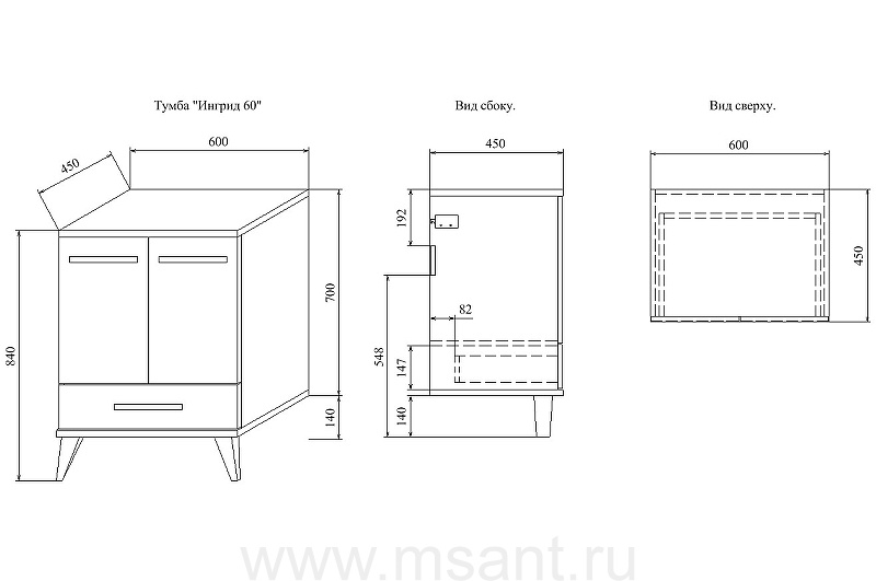 Тумба Sanflor Ингрид 60 (Шв/Б) Умывальник Олимпия 56