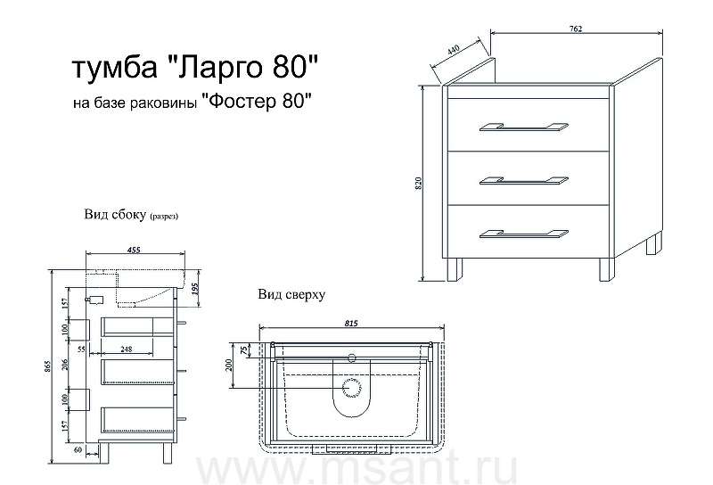 Тумба Sanflor Ларго 80 (ШВ/Б) раковина Фостер 80