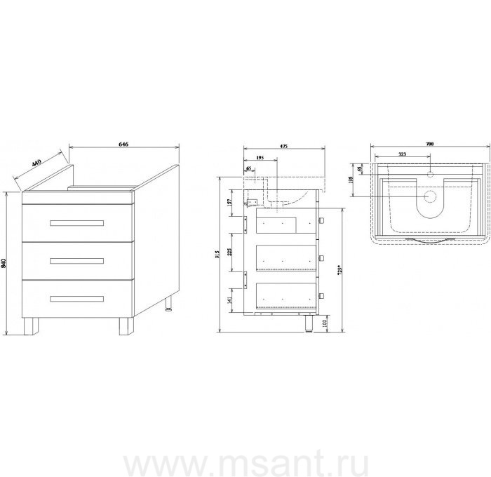 Тумба Sanflor Одри 70/2 раковина Тигода 70/Q70