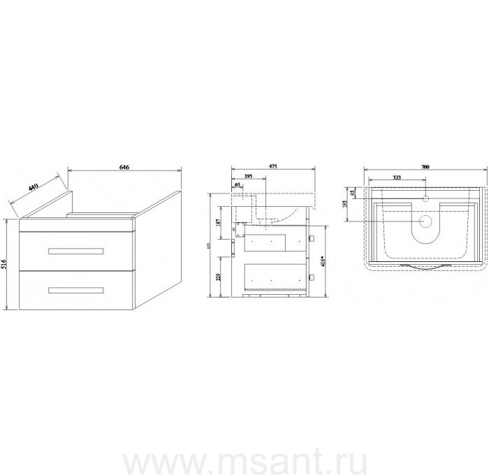 Тумба Sanflor Одри 70 раковина Тигода 70/Q70 подвесная