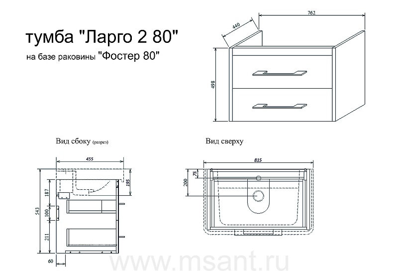 Тумба Sanflor подвесная Ларго 80.2 (ШВ/Б) раковина Фостер 80