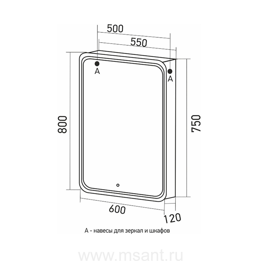 Зеркальный шкаф MIXLINE MIXLINE "Адриана" 600*800 (ШВ) правый,сенсорный выкл, светодиодная подсветка