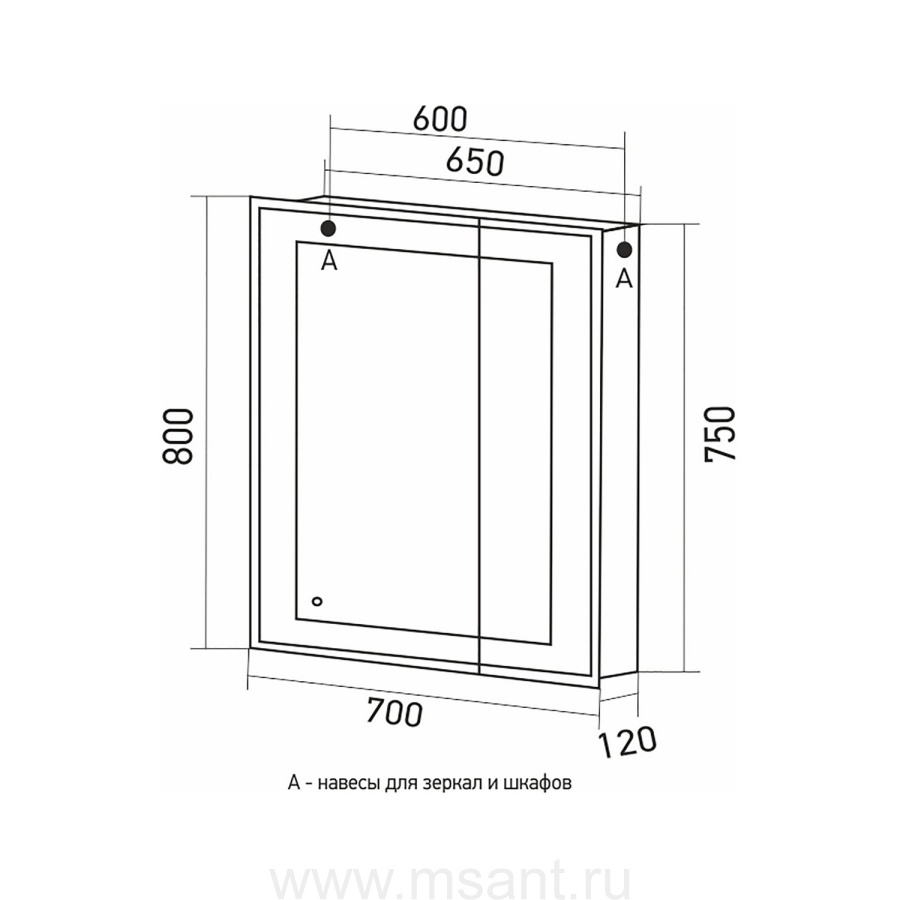 Зеркальный шкаф MIXLINE MIXLINE "Минио" 700*800 (ШВ) 2 створки, левый,сенсорный выкл, светодиодная подсветка