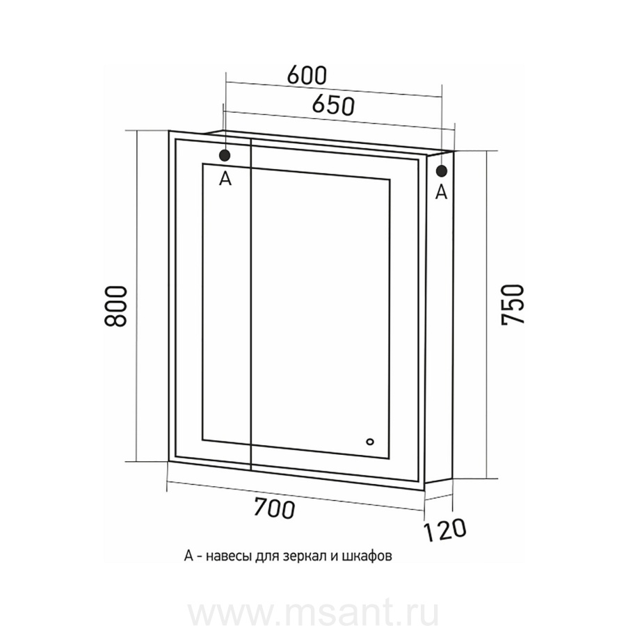 Зеркальный шкаф MIXLINE MIXLINE "Минио" 700*800 (ШВ) 2 створки,правый,сенсорный выкл, светодиодная подсветка