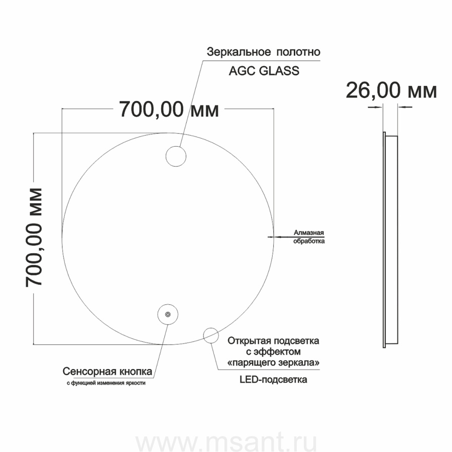 Зеркало MIXLINE "Алон круг" - ЭКОНОМ D700 светодиодная подсветка, сенсорный выключатель