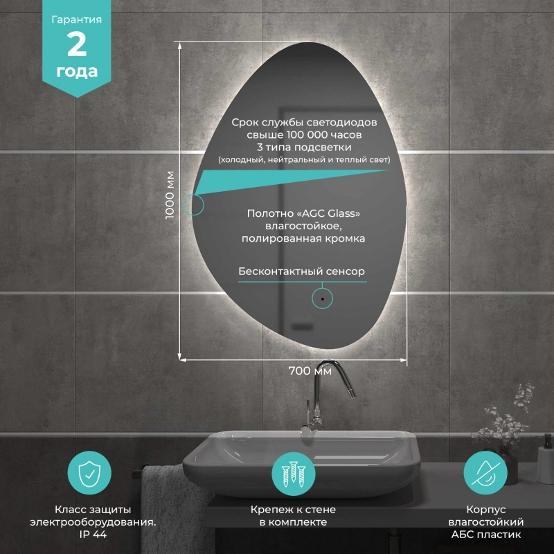 Зеркало MIXLINE "Грейс-ТХ" 700*1000 (ШВ) бесконтактный сенсор,светодиод. подсветка,универсал НОВИНКА