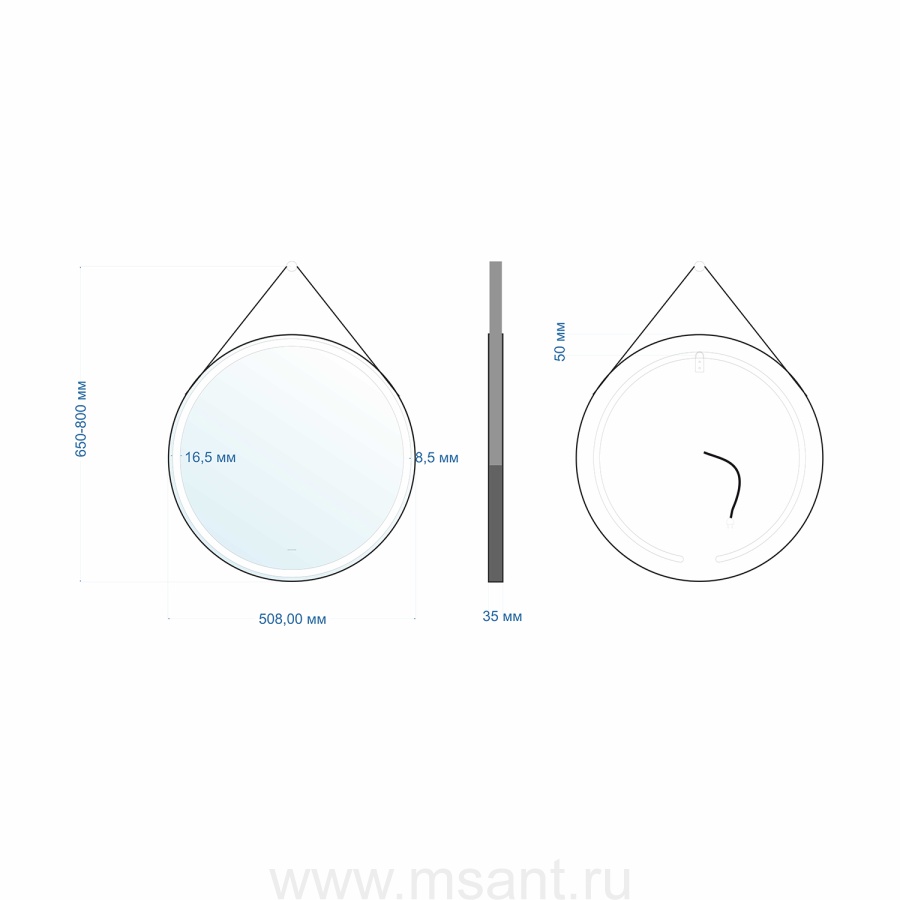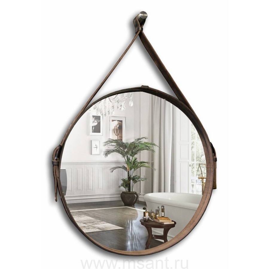 Зеркало MIXLINE "Капитан" D510 мм обод натуральная кожа (коричневая кожа)