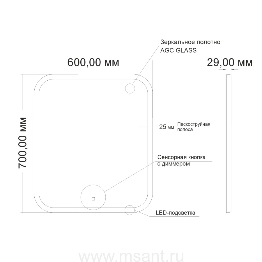 Зеркало MIXLINE "Стив" 600*700 (ШВ) сенсорный выключатель, светодиодная подсветка