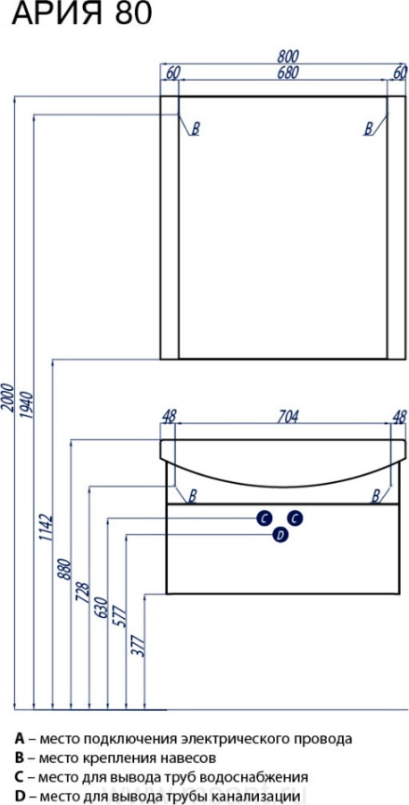Зеркало AQUATON Ария 80 белое