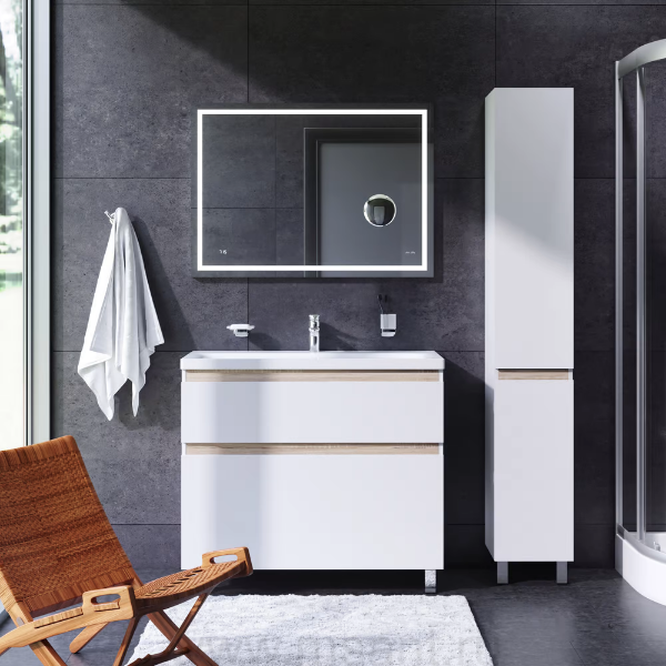Зеркало AM.PM Gem 80 с LED-подсветкой, часами и косметическим зеркалом