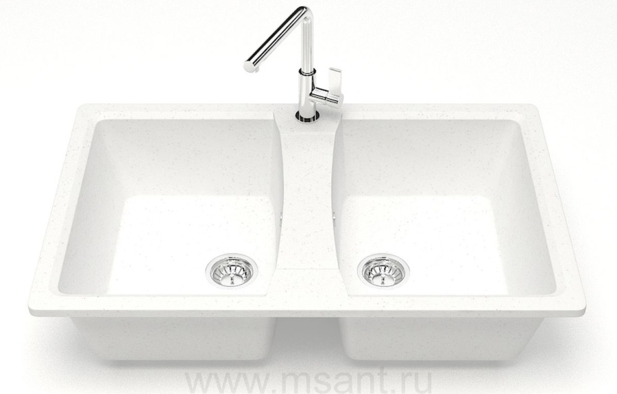 Кухонная мойка AZARIO Elmas 780х500х190 двойная, искусственный мрамор, цвет белый лед (CS00078330)