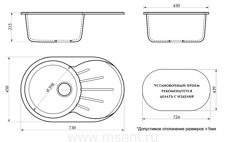 Кухонная мойка AZARIO Flora 750x505x210 искусственный мрамор, цвет светло серый (CS00079916)