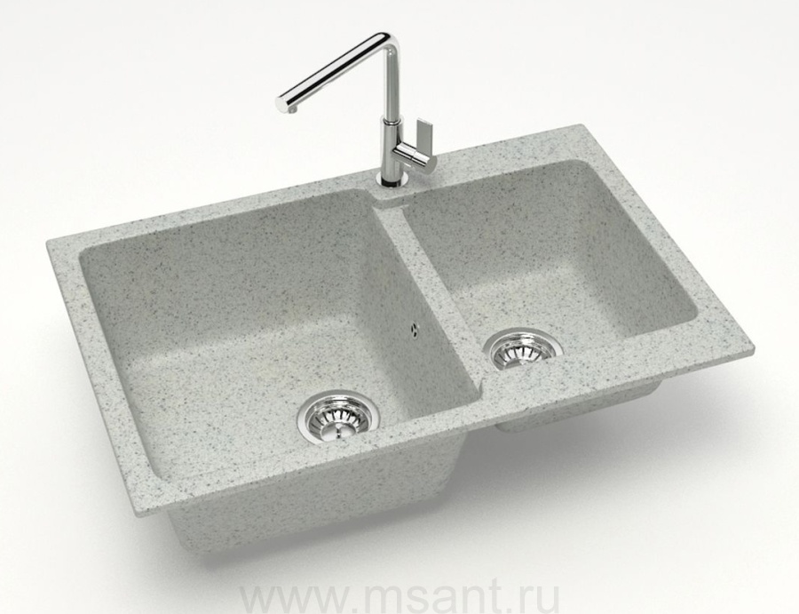 Кухонная мойка AZARIO Grand 765х500х190 двойная, искусственный мрамор, цвет Светло серый (CS00079906)