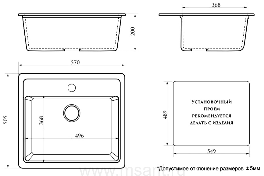 Кухонная мойка AZARIO Litos 570x505x200 искусственный мрамор, цвет Светло серый (CS00078328)
