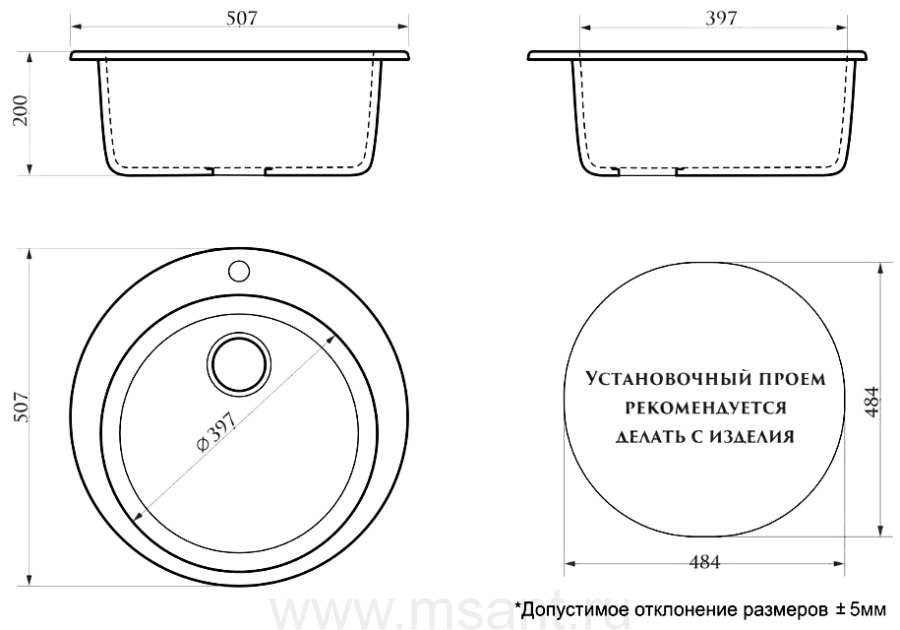 Кухонная мойка AZARIO Vital 507x507x200 искусственный мрамор, цвет Черный (CS00078345)