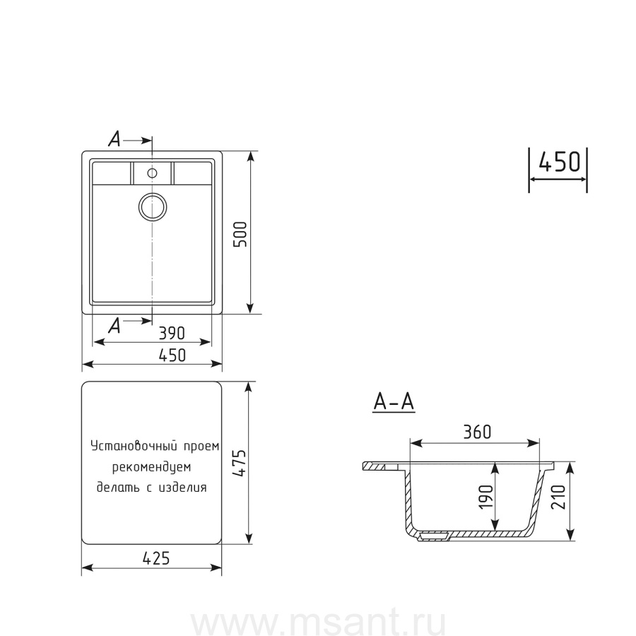 Мойкa MIXLINE ML-GM28 графит (342), 450*500*190мм