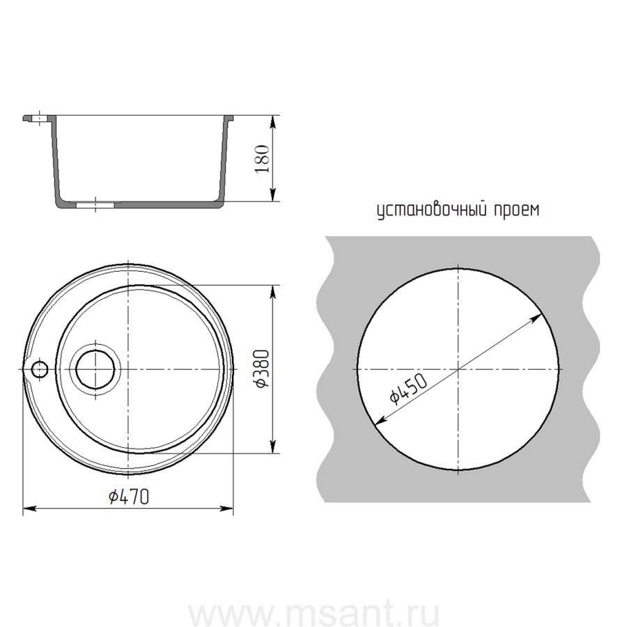 Мойкa MIXLINE ML-GMS01 СТАНДАРТ круглая, темно-серый (309), 470мм (глуб. чаши 180)