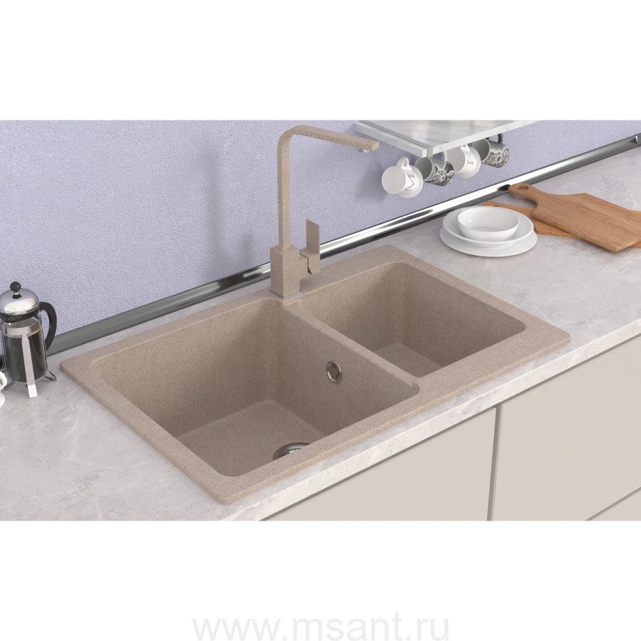 Мойкa MIXLINE ML-GMS13 СТАНДАРТ двухчашевая, песочный (302), 767*502*190мм