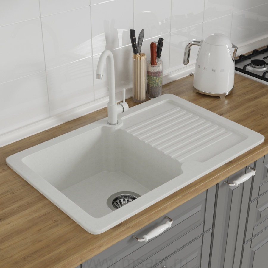 Мойкa MIXLINE ML-GMS24 СТАНДАРТ с крылом , белый (331), 765*490*200мм