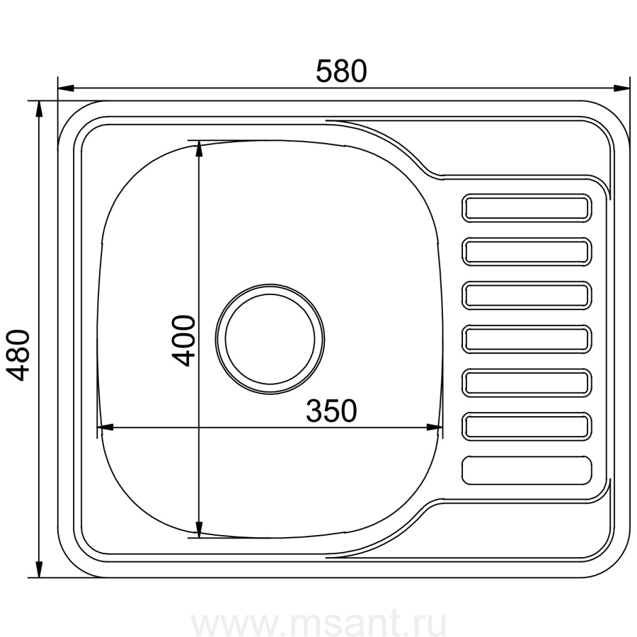 Мойка врез 58х48 (0,8) лев вып 3 1/2 MIXLINE 18см с сифоном ДЕКОР