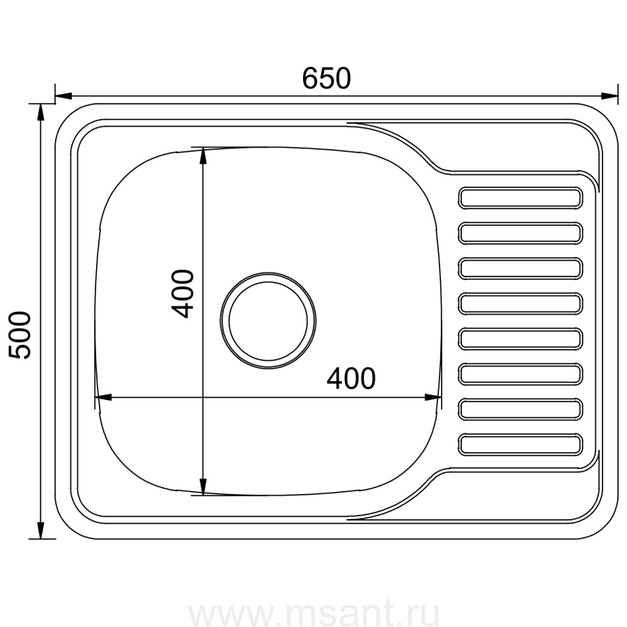 Мойка врез 65х50 (0,8) лев вып 3 1/2 MIXLINE 18см с сифоном