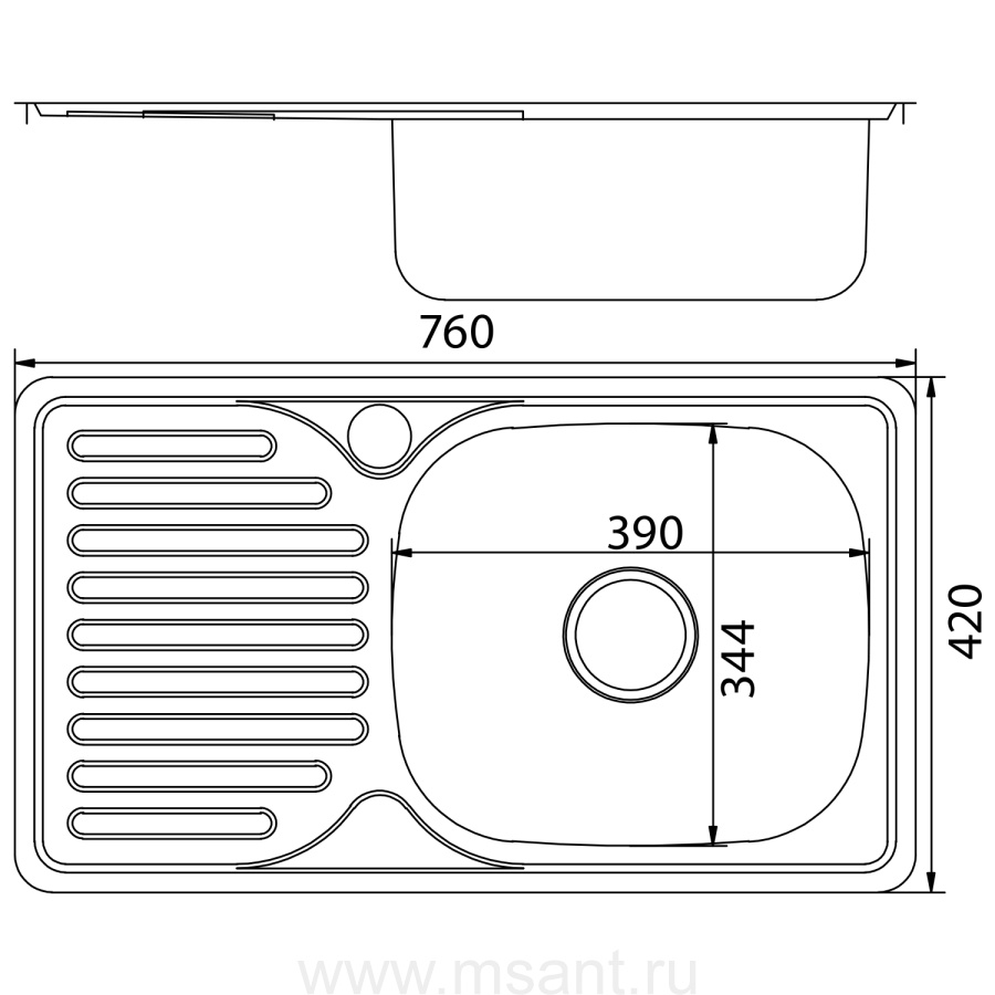 Мойка врез 76х42 (0,6) прав вып 3 1/2 MIXLINE 16см с сифоном