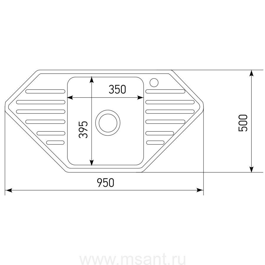 Мойка врез 95х50 (0,8) УГЛОВАЯ вып 3 1/2 MIXLINE 18см с сифоном