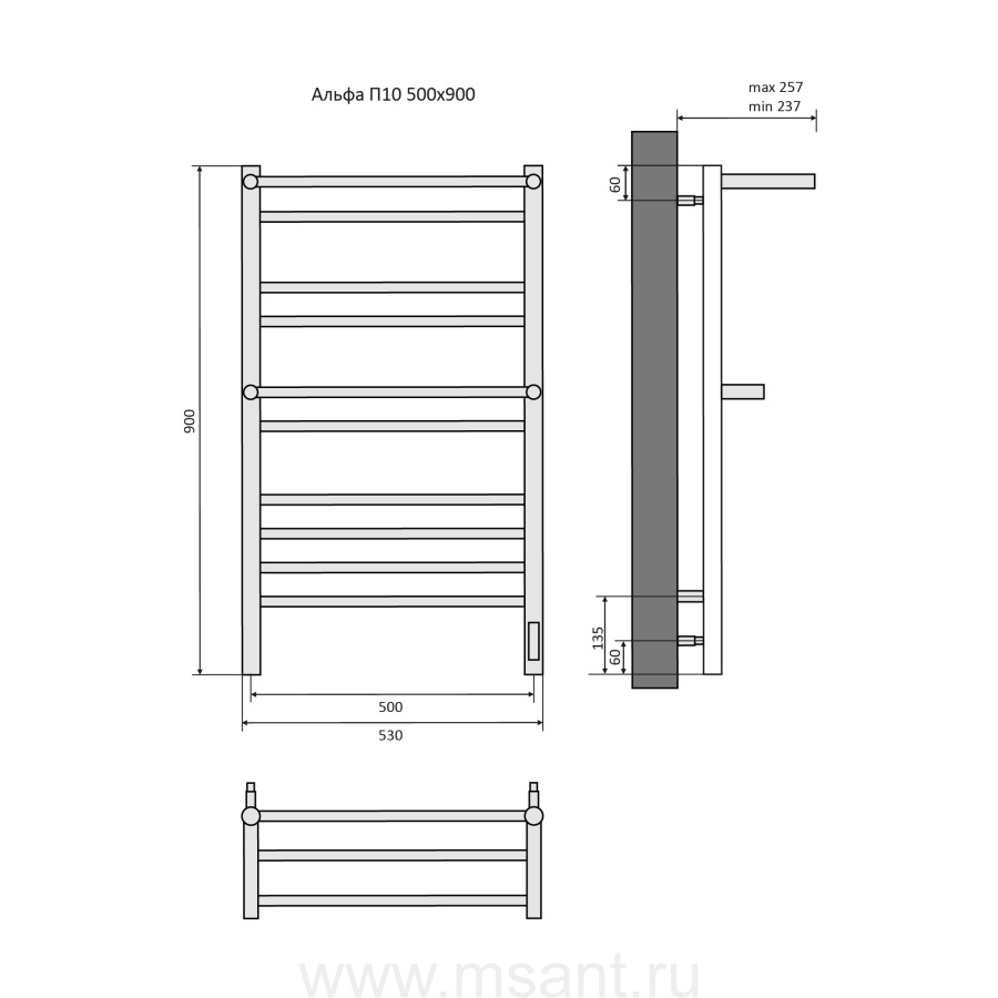 Полотенцесушитель электрический Aquatek Альфа П10 500х900 мм хром