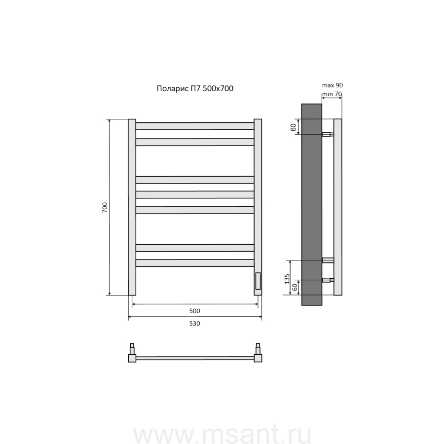 Полотенцесушитель электрический Aquatek Поларис П7 500х700 мм хром
